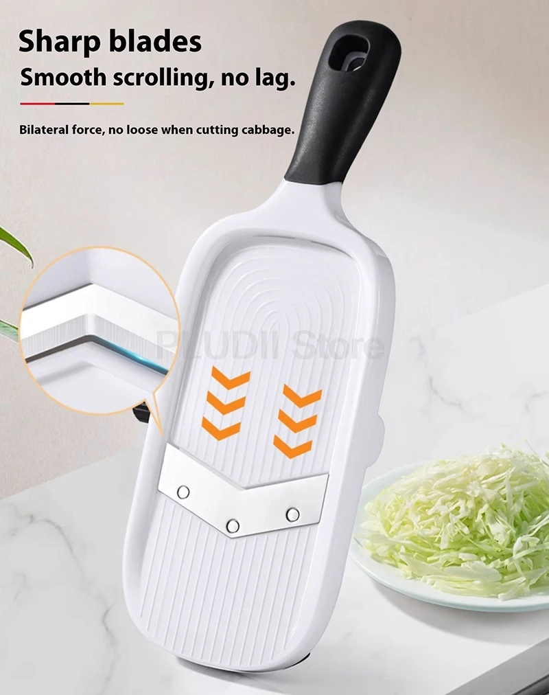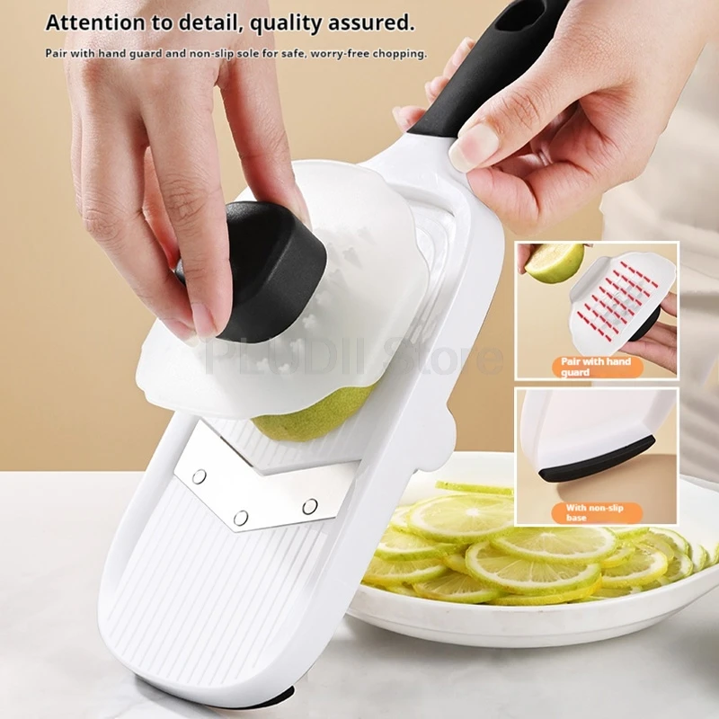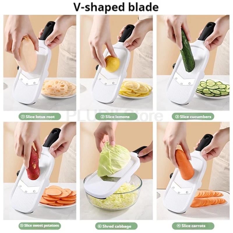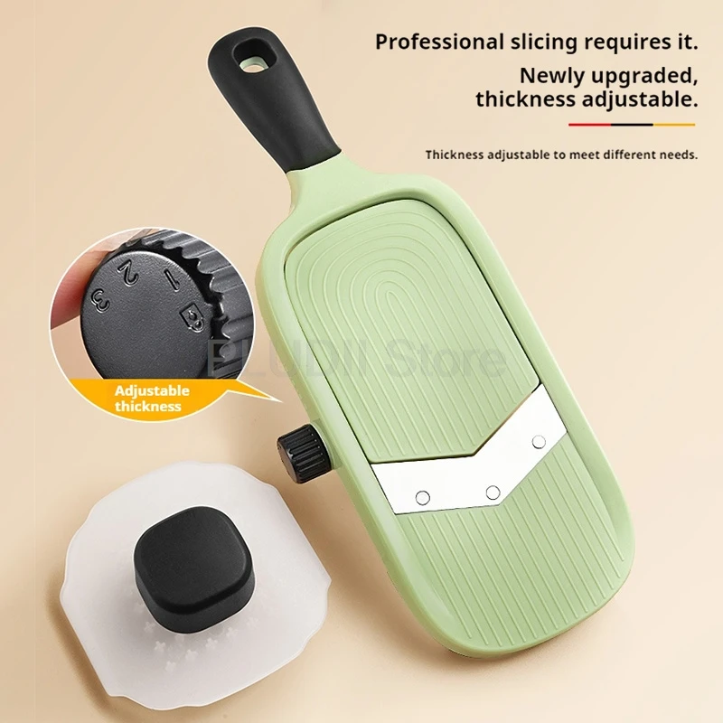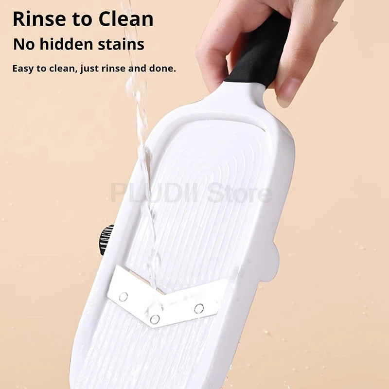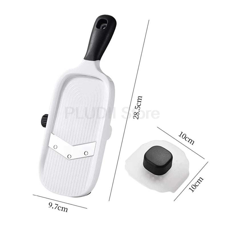 Upgrade your food prep routine with this Adjustable Multi-Function Vegetable Slicer, designed to deliver fast, uniform and effortless slicing for everyday cooking. Equipped with a sharp 420-grade stainless-steel V-blade, this mandoline cuts through vegetables and fruits with precision — perfect for potatoes, courgettes, carrots, cucumbers, onions and more.