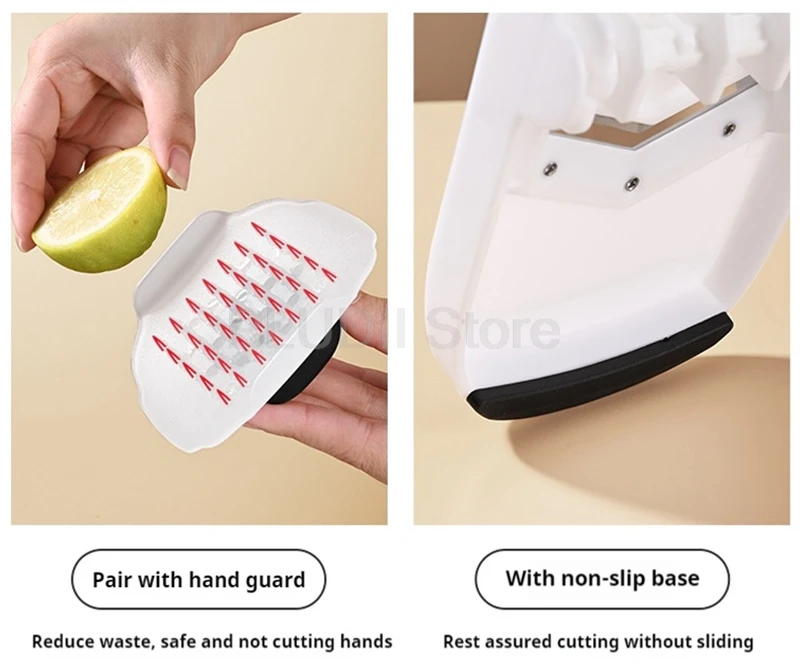 Built with a secure safety lock and a non-slip base, it ensures stability and peace of mind while slicing. The adjustable thickness settings allow you to customise each cut, making it ideal for salads, crisps, gratins, garnishes and meal prep.