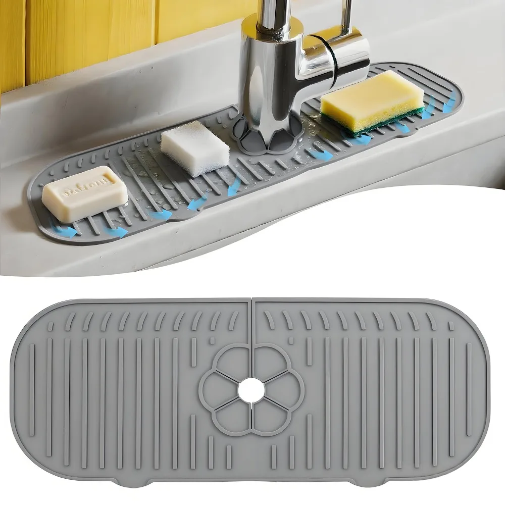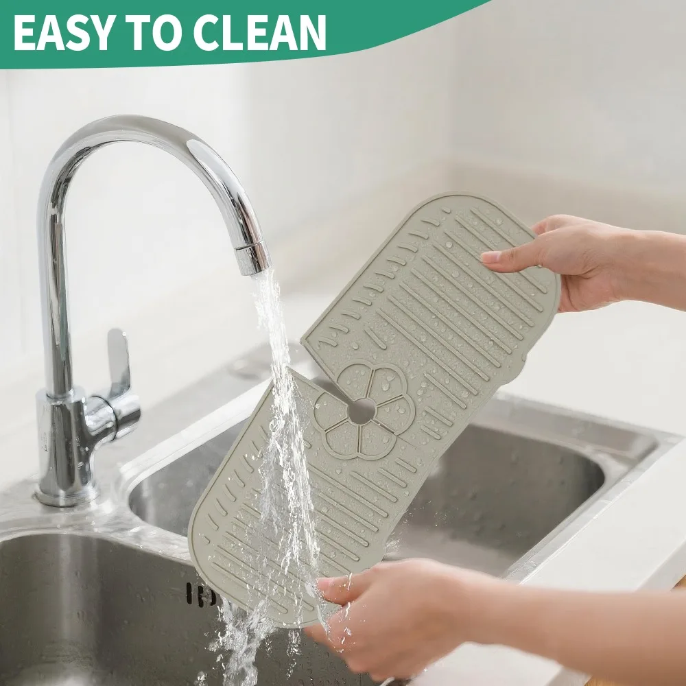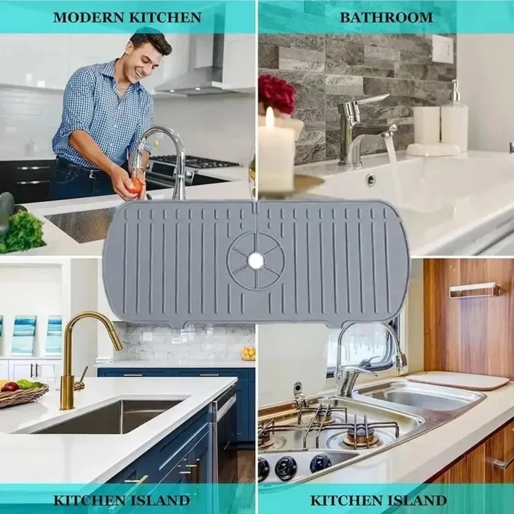 Keep your countertops clean, dry and hygienic with this Premium Silicone Sink Splash Guard Mat — designed to catch drips, prevent water pooling and protect your surfaces from everyday mess. Made from high-quality, durable silicone, this non-slip splash pad fits neatly around your tap, ensuring water flows directly back into the sink.