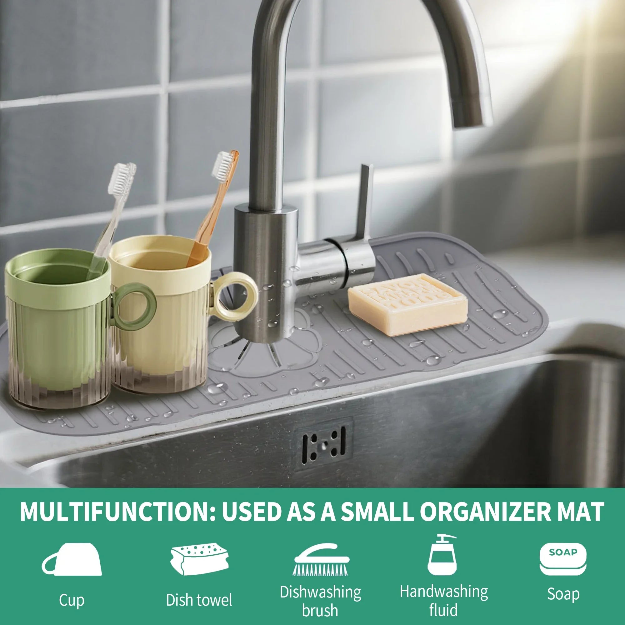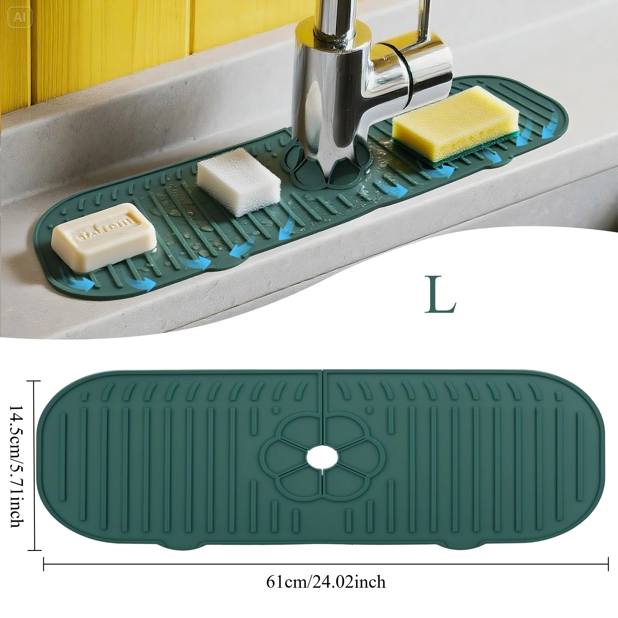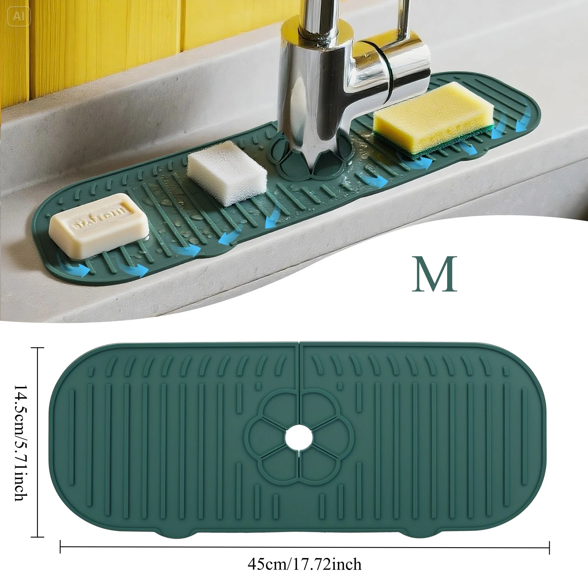 Keep your countertops clean, dry and hygienic with this Premium Silicone Sink Splash Guard Mat — designed to catch drips, prevent water pooling and protect your surfaces from everyday mess. Made from high-quality, durable silicone, this non-slip splash pad fits neatly around your tap, ensuring water flows directly back into the sink.